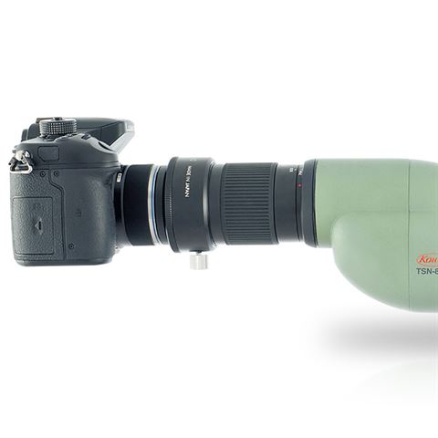 Wanneer je liever het geheel met je cameralens verbindt dan is dit ook geen probleem. Je hebt dan naast de TSN-DA10 een Kowa adapterring nodig die past op de filterschroefdraad van je cameralens. Kowa heeft de volgende beschikbare maten hiervoor leverbaar: 28, 30, 30.5, 37, 43, 46, 58, 62 en 72mm. Wanneer je cameralens een ander filterschroefdraad heeft kan zonder problemen een step-up of step-down ring gebruikt worden. Informeer naar de mogelijkheden.