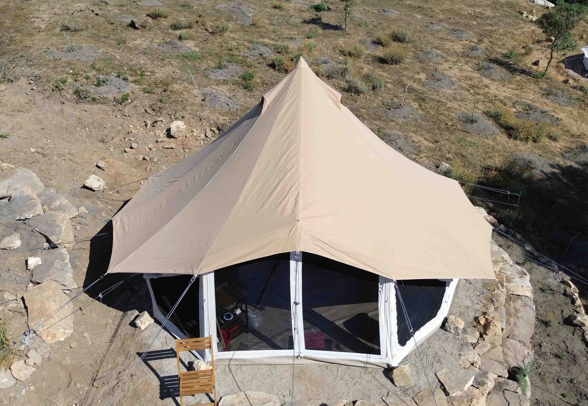 Very suitable for (semi) permanent setups and camping under trees or in extreme climates.