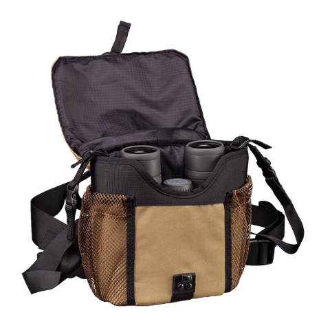 Wanneer de Vortex Crossfire HD 10x50 in het Glasspak Verrekijker Harnas op uw borst wordt gedragen kunt u met duim en wijsvinger de tas openen om daarna meteen de verrekijker uit de tas te halen en te gebruiken. Wanneer u door de verrekijker kijkt is het belangrijk om één cirkel te zien, dit kunt u bereiken door de oculairen van elkaar af of juist naar elkaar toe te bewegen. Wanneer de cirkel één geheel is, sluit u uw rechteroog en stelt u scherp met het scherpstelwiel in het midden, bovenop de kijker.