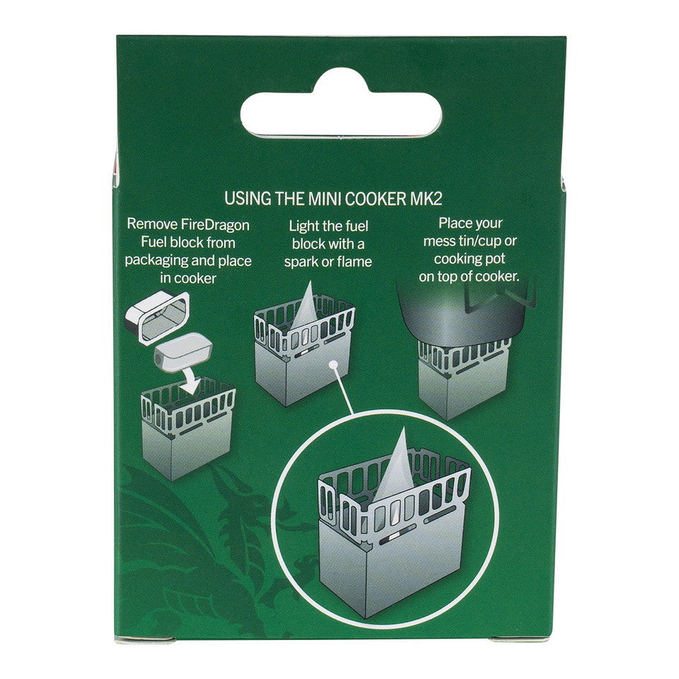 Deze mini cooker is compact en licht waardoor hij ideaal is voor outdoor gebruik. In de stove passen twee firedragon blokjes zodat je altijd brandstof bij de hand hebt. Hij is duurzaam waterbestendig en eenvoudig te gebruiken. Geschikt voor verschillende brandstoffen behalve benzine. Herbruikbaar en efficiënt voor koken onderweg.