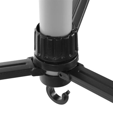 Dit Konus statief dat gemaakt is van lichtmetaal, bestaat uit drie secties van (62 cm tot 137 cm).