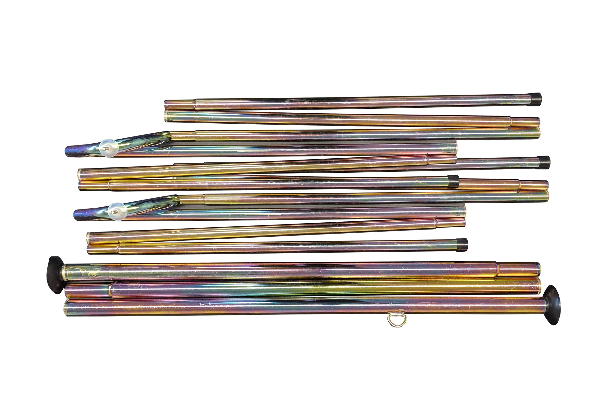 Elke set bevat een sterke centrale paal met oog en bijpassende A frames afhankelijk van het model.
