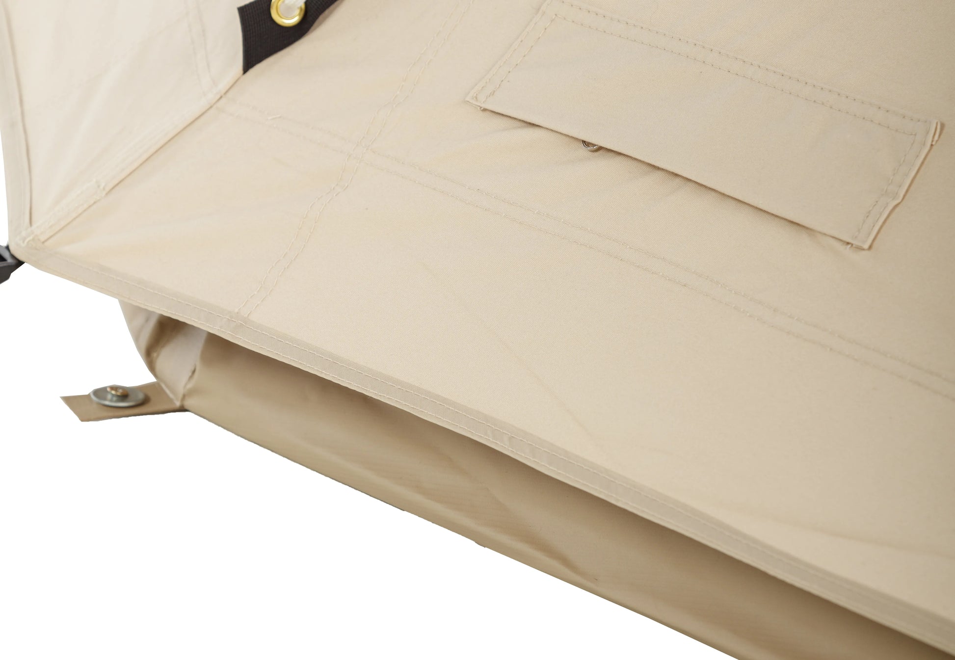 Met een waterkolom van 380 mm is het canvas volledig waterdicht zelfs tijdens zware tropische regen.