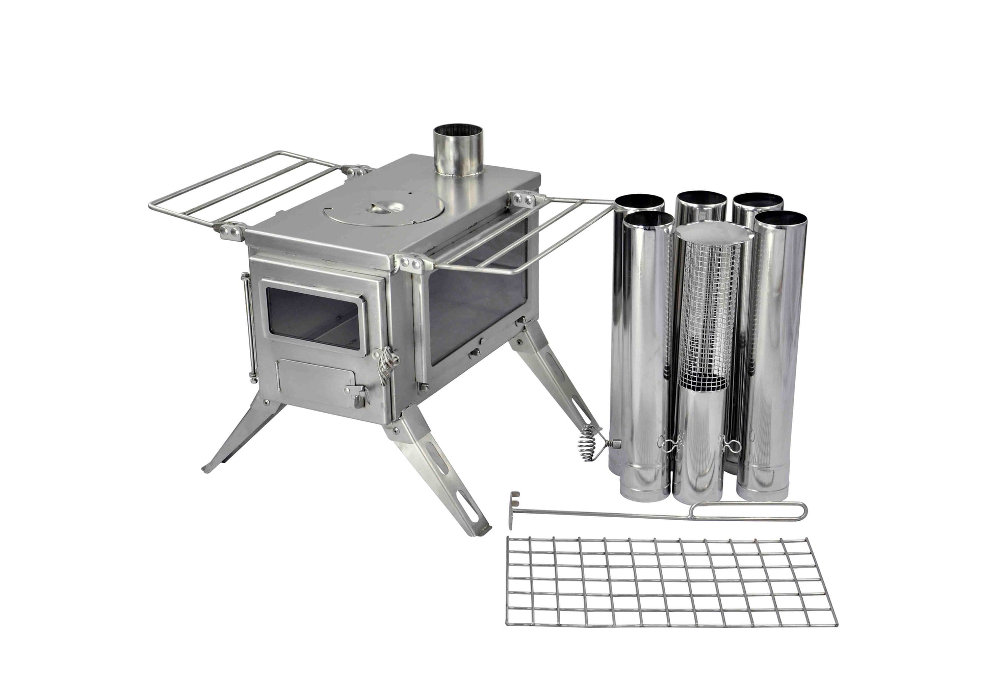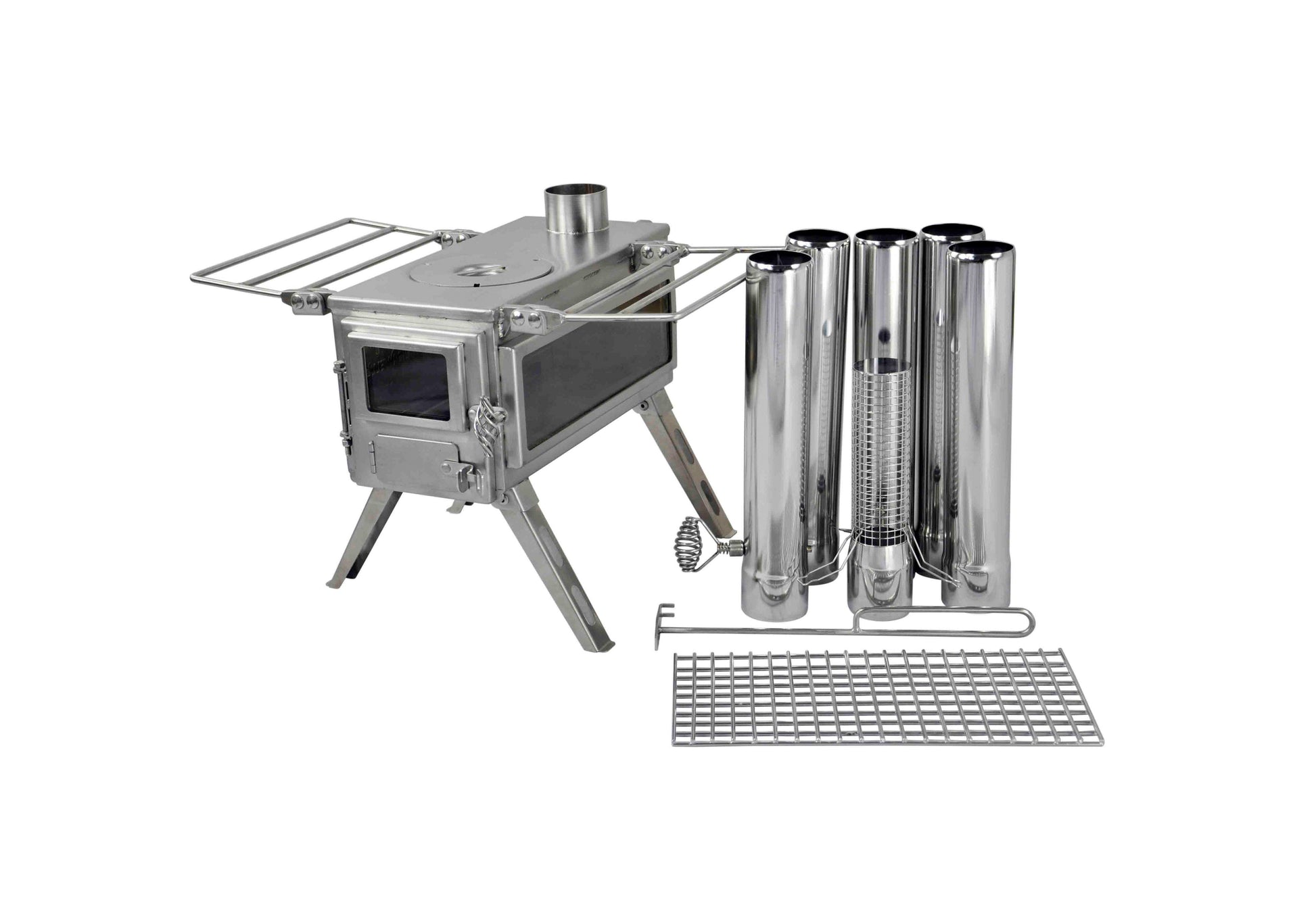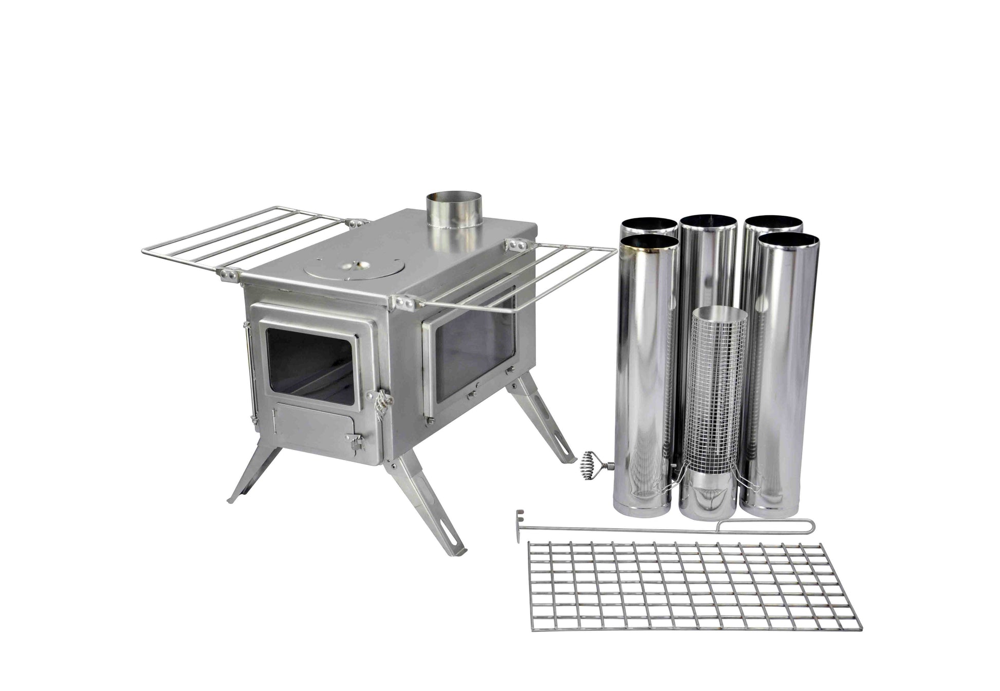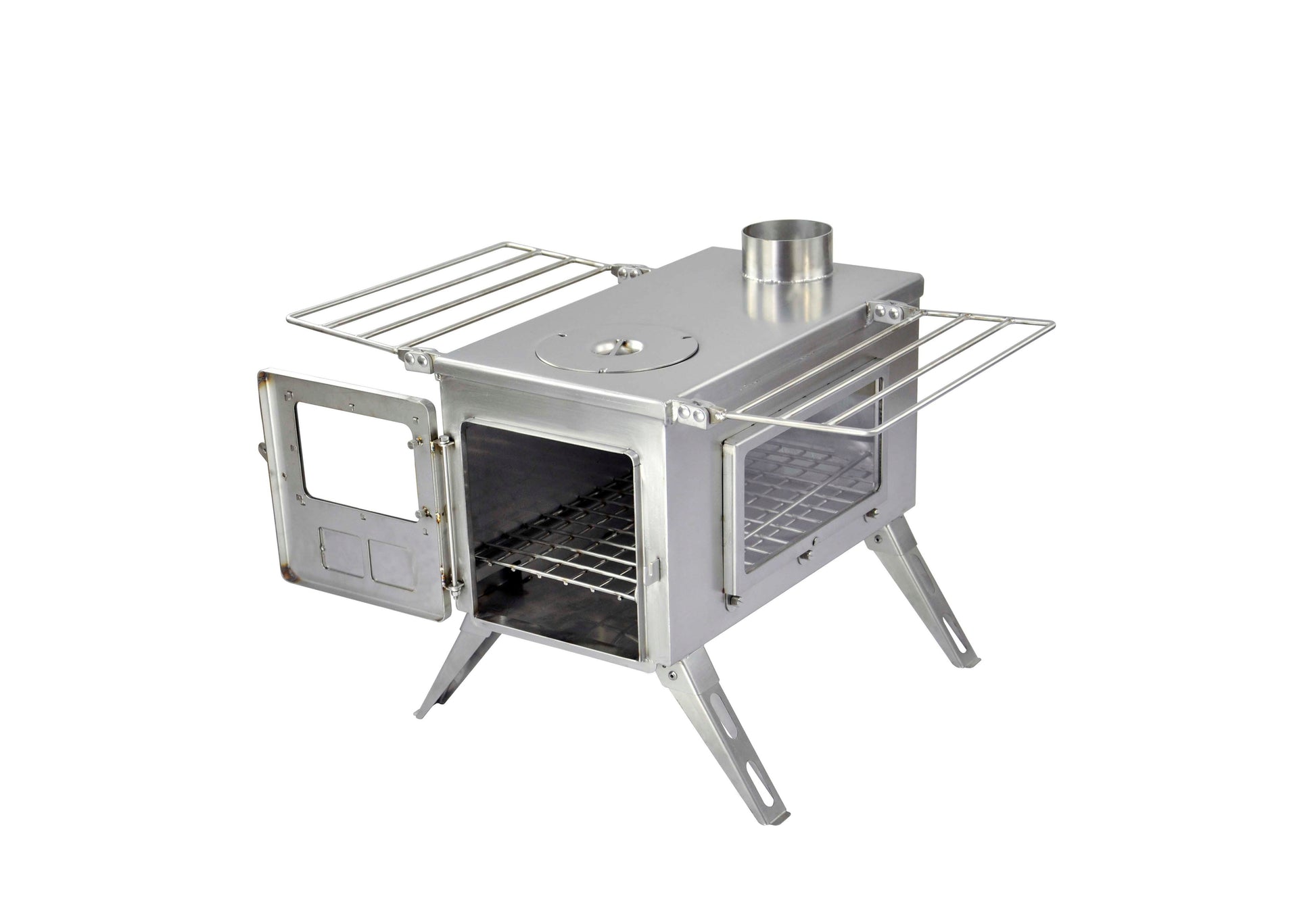 De Winnerwell Nomad View houtkachel is een stijlvolle en duurzame oplossing voor wie warmte en kookgemak wil combineren tijdens het kamperen. Gemaakt van hoogwaardig 304 roestvrij staal, biedt deze kachel een lange levensduur en hoge efficiëntie. Dankzij de compacte, opvouwbare 4-pootsconstructie is hij eenvoudig te vervoeren en stabiel op elke ondergrond. De Nomad View-serie heeft niet alleen een glazen deur voor optimaal vuurbeheer, maar ook een extra zijruit voor extra sfeer en licht. Perfect geschikt voor canvas tenten, tipi’s, yurts, tiny houses en campervans.